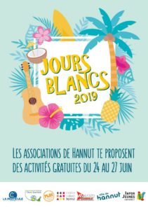 ✴️Jours blancs 2019✴️ ➡️ Depuis maintenant plusieurs années, différentes associations de Hannut s'associent pour te proposer des activités entièrement gratuites entre la fin des exams et le début des vacances d'été (du 24 au 27 juin inclus), ce sont les Jours Blancs ! Tu peux participer à une ou toutes les activités à la seule condition que tu te sois inscrit.e avant le 18 juin dans la ou les asso's qui organisent ✌️😉 Au plaisir de t'y voir 😌