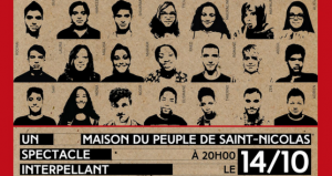 Jeunesse Nomade en scène à la Maison du Peuple de Saint-Nicolas ! Fruit poétique d’une rencontre inattendue entre des jeunes mineurs étrangers non accompagnés (MENA) vivant dans des centres pour demandeurs d’asile et des jeunes de Maisons de Jeunes, cette Jeunesse Nomade a fait naître un spectacle magique, bouleversant et spontané qui mélange théâtre, danse, musique et vidéo. La création raconte les itinéraires et questionnements des jeunes sur le façonnement de notre société cosmopolite et sur le sens du mot…
